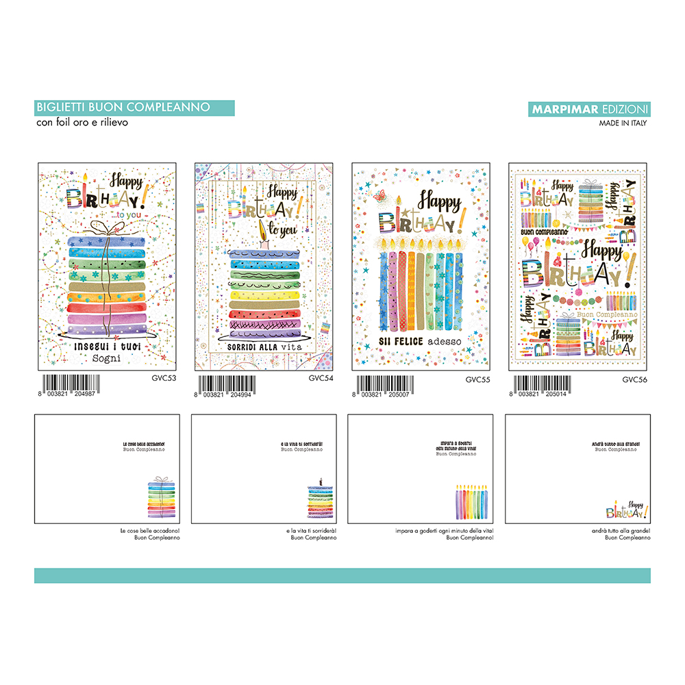 BIGLIETTI COMPLEANNO C/FOIL ORO E RILIEVO x 12 Pz. ART.AGVC14/12