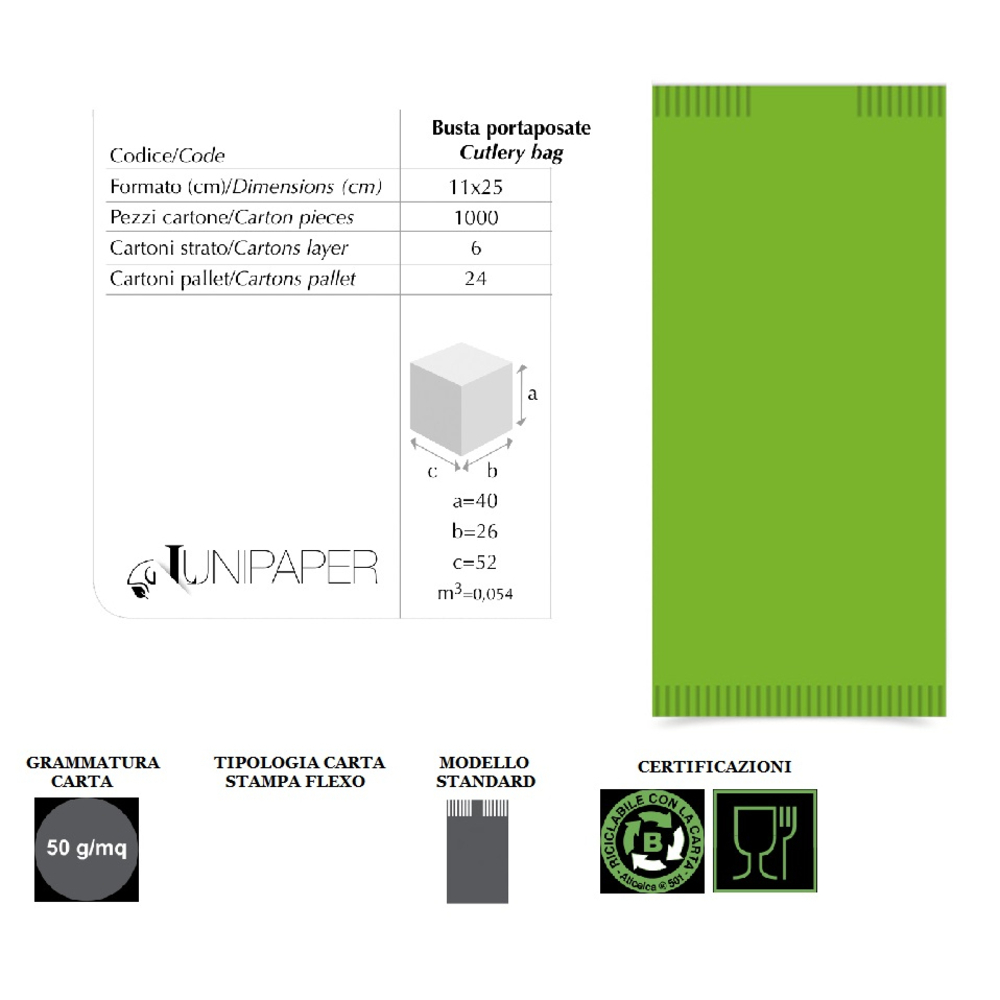 BUSTA VERDE PORTAPOSATE+TOVAGLIOLO x 125 Pz.